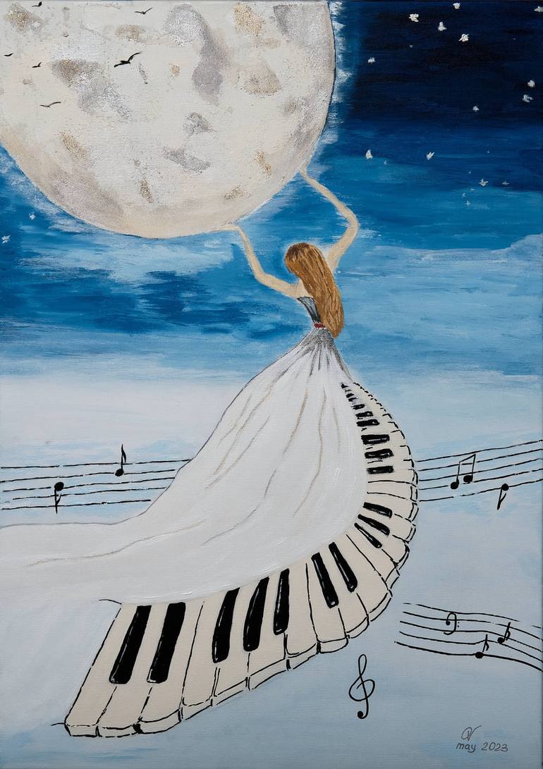 Painting from the series "I see music". My attempt to draw music))) I listened to Beethoven's "Moonlight Sonata" and saw it just like that. The picture was painted in one session and using a limited palette - 4 basic colors of acrylic paint. The ends of the picture are a continuation of the plot o...
