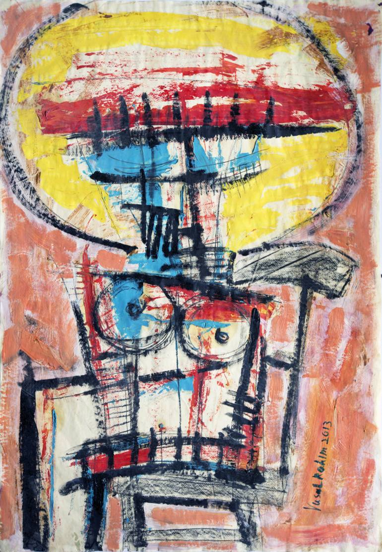 b. 1987, Ganja, Azerbaijan He lives and works in Baku Vusal Rahim is a multidisciplinary, multimedia artist and performer. Trained as a theater designer, he studied in the department of Theatre and Decorative Design at the Azerbaijan State Academy of Fine Arts in the workshop of People’s Artist Kamil Najafzadeh from 2007 to 2011. He chiefly works in painting, graphic art, decorative theatre and stage design, video art, photography and sculpture, often involved in more than one medium simultaneously, with numerous different techniques. In his art work, Vusal expresses a unique perspective on figurative images, using the human form as his inspiration. Through this lens, he analyzes social expectations and gender roles, illuminating things which are often buried deep within the cultural memory. Through the embodied form, both individually and together as families, he confronts major life questions about culture, identity, gender and societal values. He illuminates the friction between spoken and unspoken taboos, and through his work invites viewers to examine their own agency within their culture. Key features of his style are the deconstruction of human images and their unconventional reconstruction using a large and imaginative palette. Viewers of his works are challenged to consider how we take the human form for granted and how changes in form and colour can introduce vastly different impressions and suggestions about people as individuals and in social groups. His education and continued involvement in theatrical costume and stage design can be seen in his work through the application of vivid colour and deliberate, confident lines, that give his paintings a starkly dramatic, theatrical look.