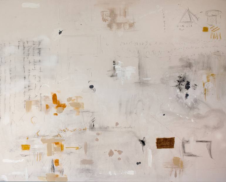 This work was inspired by stream of conscious poetry and the notes that we often write to ourselves and doodle to help to remember something of importance. This was one of the first pieces in this series of "Distressed Neutrals" and remains one of my favorites because of the composition of "geometr...