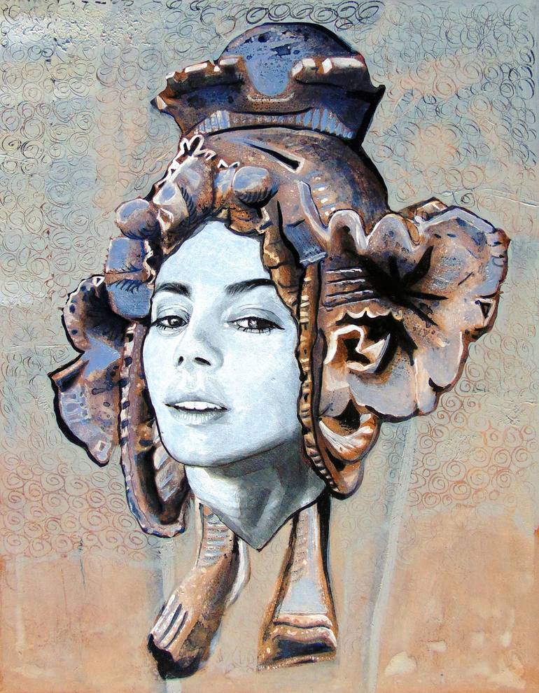 When painting, headdresses and crowns deify Kate Kelton’s subjects. She uplifts the Unsung Sheroes & Heroes, Patriarchy Smashers, Warrior Survivors, Silence Breakers, Philosophers, Truth-Tellers, Whistle Blowers and Thought Giants of all stripes. She paints her portraits cloaked in the garb of statues Ladislav Šaloun sculpted onto the train station that her great-grandfather, Josef Fanta, designed for Prague in 1901 - 1909. Apotheosis through a reclaimed, reapplied Art Nouveau. Sampling her own lineage, she transforms a historical body of work, itself a thing of lasting beauty; exchanging granite for graphite, plaster for paint. In Photoshop, she first combines the desaturated faces she's found, sourced or shot of her chosen subjects, with the black and white photos from her family and friends, of the statues in situ. Then she uses graphite, inks and acrylic paints and glazes to create the works on panel or canvas, literally uplifting and elevating her battle-weary subjects to the highest reach of architectural strata. 'Ancient and distant godlike beings, surveying a dying empire, trade places with the fresh blood of her subjects. The work presents a tactility against the digitized space, and represents a taking, an acquisition of power back from the tastemakers. Here, the mantle of the artist is above brand influencer, above internet commentator, above mere marketability. In their gaze is a warning, “Art is immortal. Come for me, why don’t you?”' ~ Micah Chaim Thomas "Kate's recent work is a matter of expansion through contrast - she is as ephemeral as her subjects are concrete architecture; she is structural when her subjects should slip through your fingers like too-fine sand. Taken as a whole, the works in her magnificent series Sentry are incredibly intelligent, but when looked at individually, you come to understand that these are statements of life beyond themselves. The series take embellishments of a Prague train station designed by her great-grandfather, Josef Fanta, and combines these with portraits of women who have stood against the sexual harassment and assault rampant in Hollywood. These women, like Kate herself, have suffered in the era where powerful men, every bit as immovable as the train station, wielded their power without check. The portraits emblazoned on architectural elements, they are marked against the edifice, every bit as permanent, and perhaps even more defining.
