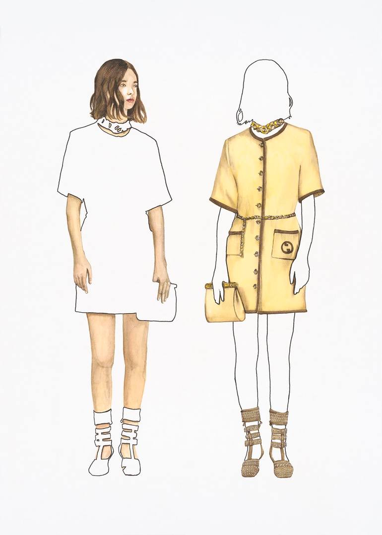 This painting is part of a series of works inspired by fashion photography. It shows two opposing figures: two mirrored models. Visually the two figures complement one another; the absence of colour in one contrasting with the rich colours of the other, as well as the focus on the individual (figure...