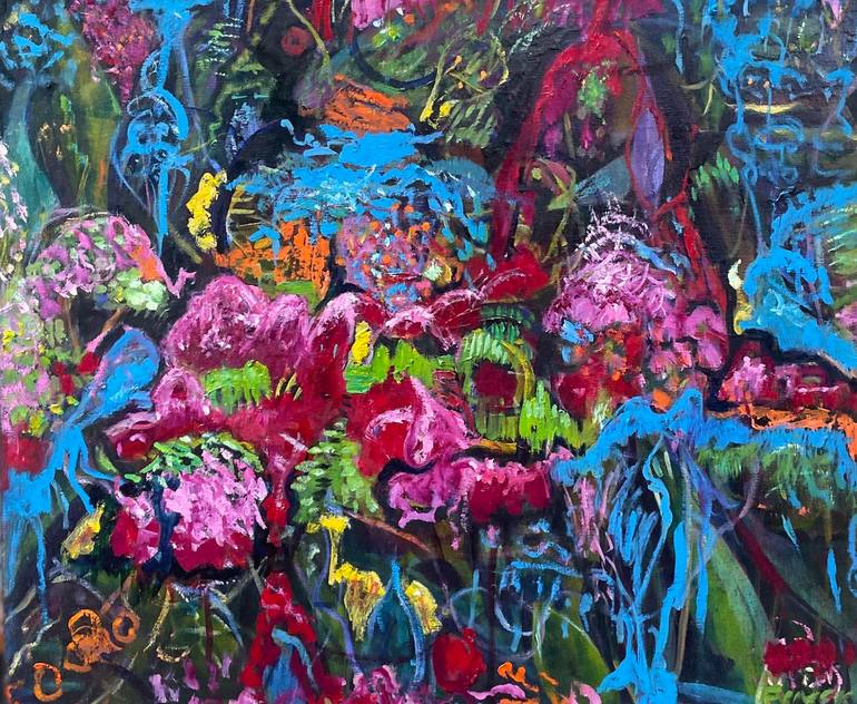 Abstract art is art that does not attempt to represent an accurate depiction of a visual reality but instead use shapes, colours, forms and gestural marks to achieve its effect. My painting had many incarnations before I was finally satisfied with it. The title comes after. The title was thanks ...