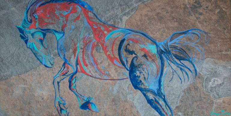 Yaheya is an equestrian artist creating fine art paintings and drawings of horses. She has been passionate about drawing and colour since childhood which led to her studying at Central Saint Martins College of Art and Design from where she graduated with a (BA Hons) degree. Horses have been part of her Indian family background for generations. Her grandfather was a keen horseman and polo player whilst her father and mother both grew up with horses. Yaheya loves to watch horses especially when they are free, having fun and also enjoys meeting clients who share a close bond with their horses. This is reflected in the mood and movement of the horse and that is when the magic happens for her. In their effervescent movements, as their bodies catch the light interspersed with shadows, Yaheya sees dazzling colours. The work harmoniously marries three dimensional elements with those of linear shapes and bold lines that punctuate the muscle tension of the horse and capture it's spontaneity, add to this layers and layers of vivid brilliant paint and the viewer is transported into Yaheya's realm of personal fantasia, as the horse is seen through her eyes. Her paintings are a visual feast where her audacious colour palette does not shy away from sunset orange-reds, violet blues, deep pinks, turquoise and deep bottle green contrasted against silvery greys, creamy beige hues and porcelain white. Her style is very definitely expressionistic but one is also reminded of Fauvism in her choice and application of colour, influenced by Mikhail Vrubel, Edmund Dulac, and her love of manga anime. She explains she is on an adventurous journey where each new work presents challenges and rewards paving the way to new and exciting ideas to draw and paint. Her equestrian work is collected in many countries worldwide, amongst them America, Germany, UK and Switzerland.