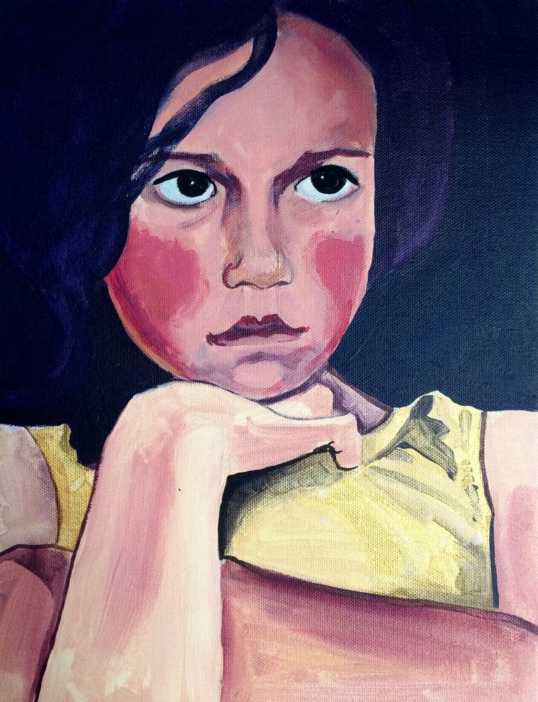 A portrait of a beautiful child, looking pensive. The sources for Blackwell’s imagery are the threads of family life; observations of her children in varying domestic scenarios at rest or at play. With a stylised intensity of vibrant colour and pattern, the paintings elevate the everyday beyond th...