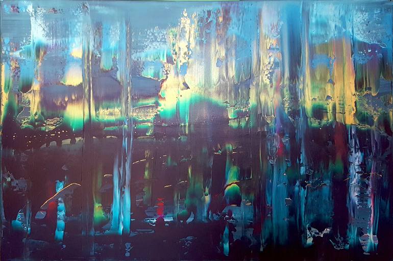 An original one-of-a-kind large palette knife abstract painting. The magic of the night often shows what we can’t see at night. Multiple layers created with a combination of brush strokes and pallet knife gives the painting a gentle texture. Professional acrylics on stretched canvas protected with s...