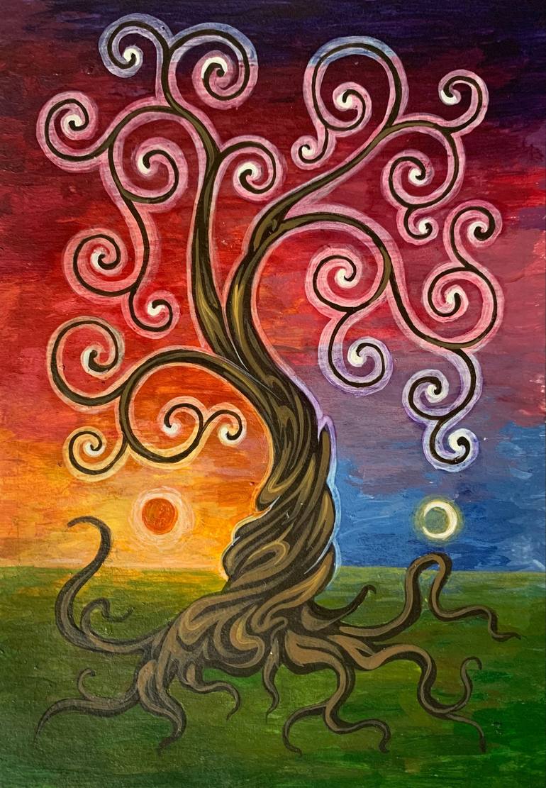 This magical wish tree is created for a collection of metaphorical cards. The original is not for sale, but each card is like an independent picture. Available for printing.