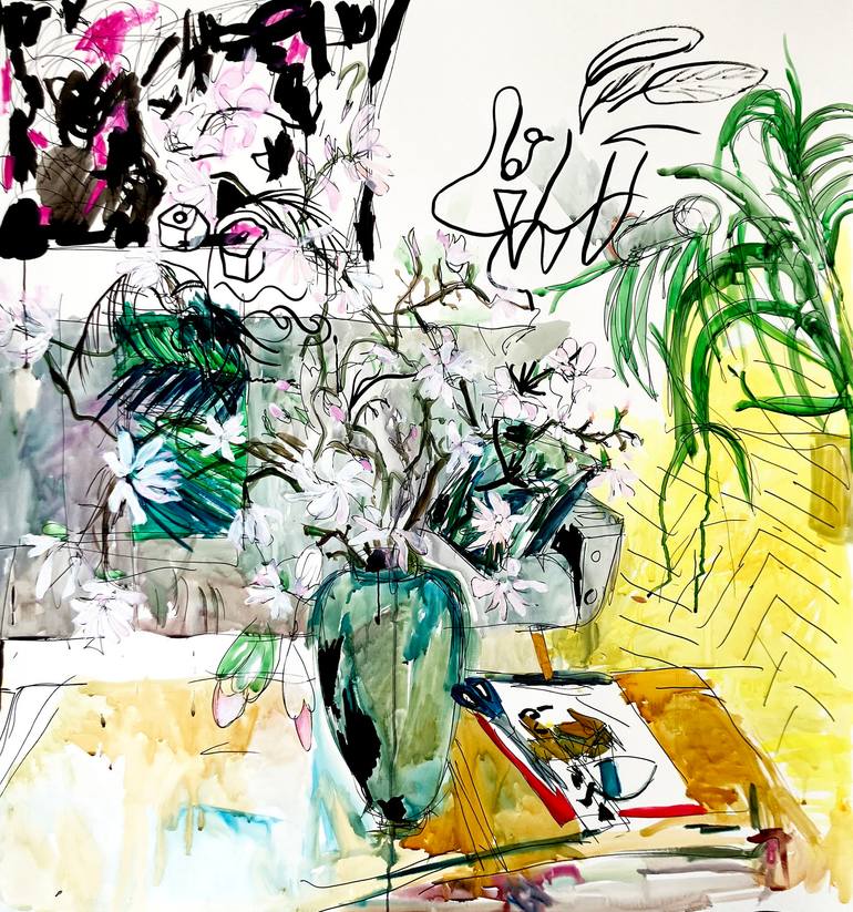 In April my friend sent me a picture of a magnolia branch that she cut in the garden of her new home. I wanted to paint the image immediately. It was a moment of instant inspiration and I didn't want to lose it. So I painted the work non stop until it was finished on the same day. In that magnolia b...