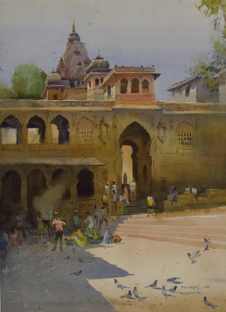 This painting done at studio after trip to Maheshwar. one of the beautiful heritage places in MP, India.[ paper waterford 180 gsm.]