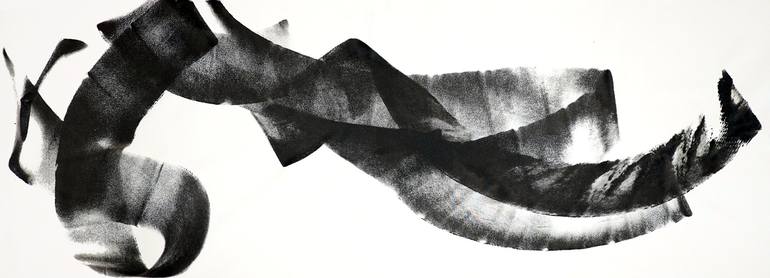 "Mainliner" is a perfect example of Hunter's commitment to the black and white form and expressionistic style. The painting is wall-sized, minimalist, interpretive and impressive. This is a painting that makes its own mark in any environment. Painted with acrylic on museum-quality 86 x 36 inch unst...