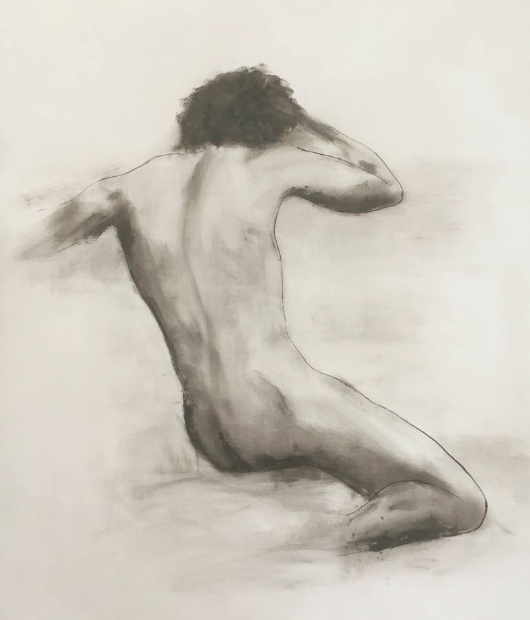Male nude artwork from my human form studies expressing the human express a feeling of rest and isolation. Created with an ink outline on Fabriano heavyweight paper before adding light and texture with layers of oil paint. Signed and dated by the artist ready for framing or loose hanging.