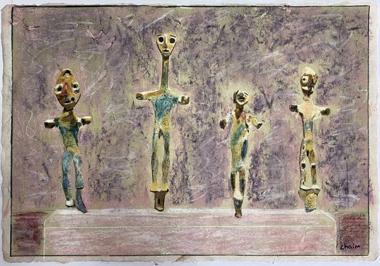 These ancient figurines are in the collection of Cambridge University. The art is mixed media on handmade paper.