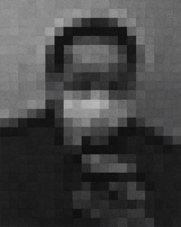 Robert Szczerbowski (read: Scherbowski) Conceptual artist, painter, writer, born 1959, lives and works in Warsaw, Poland. He started his artistic activity as a writer. However, he consistently moved away from the sphere of language, increasingly incorporating visual elements into his work. "The artist builds his own fictional dimension, regardless of the medium he uses. His books, objects, paintings and films are subject to the deconstruction of learned ways of perception. They break illusions, often evoking the feeling of absurdity. He uses the language of "high-tech" and analyzes its impact on the inner space of man, his spiritual needs and imagination. In objects and installations Szczerbowski uses, among others, hermetic computer programming languages, and in paintings refers to fractal geometry. In most works, he strives to obliterate the subjective element, trying to authenticate their fictional and apocryphal reality as much as possible. Some of his books were published anonymously, and many artistic works are simulacra. He creates films that reveal the mechanisms of the hypnotic reality of mainstream cinema. His versatile work is characterized by the trickster's approach. " (D. Misiuna Chaosmos) His "cybercanvas" (a cycle called Fractal paintings) constitute an attempt to relate painting to modern-day mathematics and geometry, and, on the other hand, to the computer virtual space that has become the new reality of the digital era. Szczerbowski represents structures composed of pixels painted with oil and acrylic on canvas. He is inspired by a similarity between forms obtained through purely mathematical operations and with the use of a machine - and motifs from the realm of human imagination, manifested once in, among other things, art and religion.
