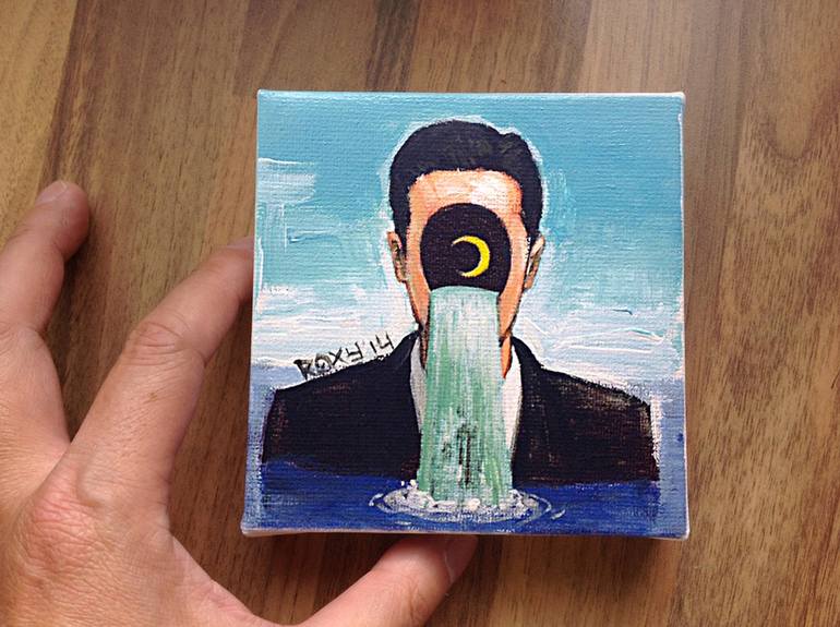 A tiny acrylic painting on Stretched Canvas ( Man in water ) ~~ This my original acrylic painting size 10 X 10 cm , ready to hang