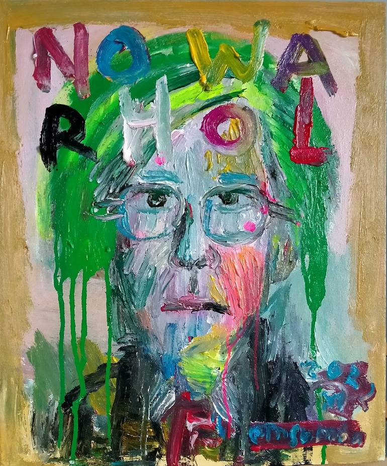 Man with Green Hair by martinus sumbaji acrylic and spray paint on canvas, 70x75cm, 2022