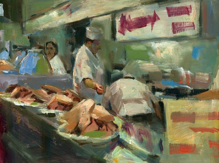 Manny’s is part of a series depicting labor themes. As in most of my paintings, I use subdued colors and loose brush strokes in order to create the mood and feel of spontaneity. Art buyers may see a symbolic reference to prominent 20th century American painters like George Bellows, John Sloan, Is...