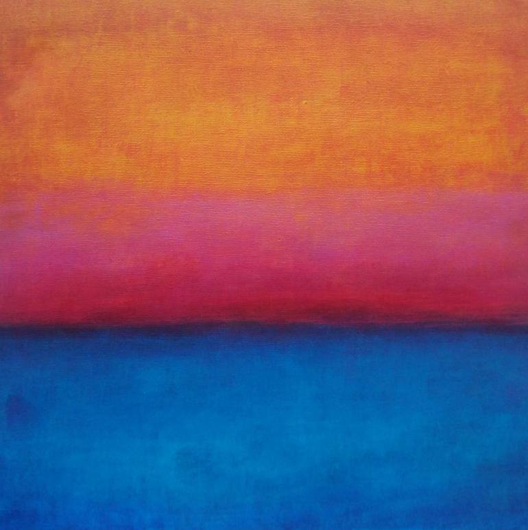 This painting belongs to the series of Horizons. It is inspired in the twilight when the sunset is plenty of intense colors and fullbright. The most wonderful moment to be contemplated when the night is fallen, and invites us to reflect about the mistery of light, life and death. The precise moment...