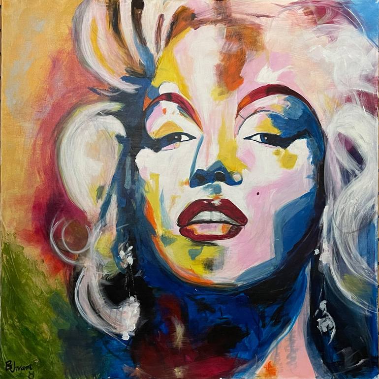 "Marilyn Monroe in Dyslexic Realism" is a stunning and vibrant painting that measures 48 x 48 inches. This piece showcases the iconic Hollywood actress in a fresh and imaginative light, as seen through the lens of Behram Agha's unique dyslexic-realism style. The painting is characterized by bold an...