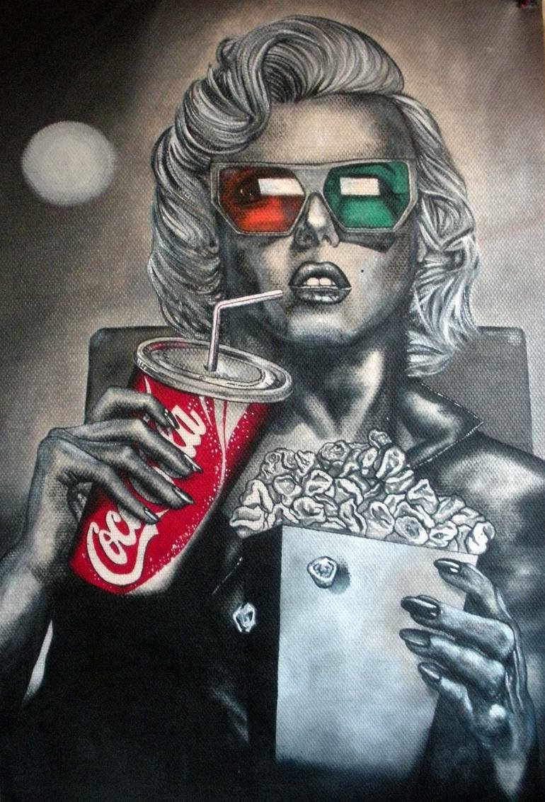 Marilyn Monroe Peinture sur toile de fibre de verre Painting on glassfiber canvas Large Format Dimensions: 100 cm x 140cm / 39,37 inch x 55,11 inch Couleurs / Colors Gris de Payne - Rouge de garance / Payne's Grey - Madder red / Argent - Silver you can see the painting in the workshop: 25 avenue de...