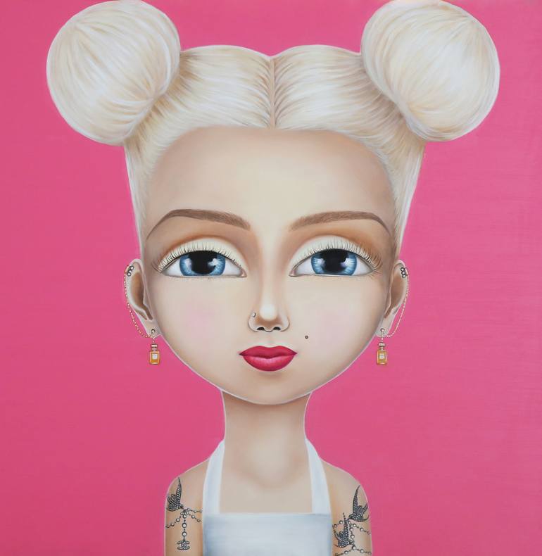 Meet the talented Los Angeles based artist, Gina Palmerin. Gina is a self-taught artist and began her artistic journey at the age of sixteen when she was introduced to oil painting. She was immediately captured by the process and continued to experiment and teach herself. Throughout her twenties, Gina experimented with several different influences and styles; early 20th century Mexican Murals, Mexicanidad, Art Noveau, Classicism, Surrealism and Pop Art. Her work has been primarily focused on the human face and figure. Over time Gina has developed a unique style which has fused realism, classicism, expressionism and abstract art into one. Gina is currently focused on creating and modernizing iconic classic works of art. “I strive to take the iconic and familiar and fuse it with fresh, design inspired, modern and inspirational visual ideas.” Her childhood influences of her mother, a renowned doll artist are apparent in one of her recent collections, entiltled, Picture Day: The Icons. Reminiscent of an elementary school yearbook photo, this series features iconic artists, legendary actors and musicians painted into vibrant modern child portraits, with a slight attitude. To see Gina’s work in person, check out Sparks Gallery in San Diego!