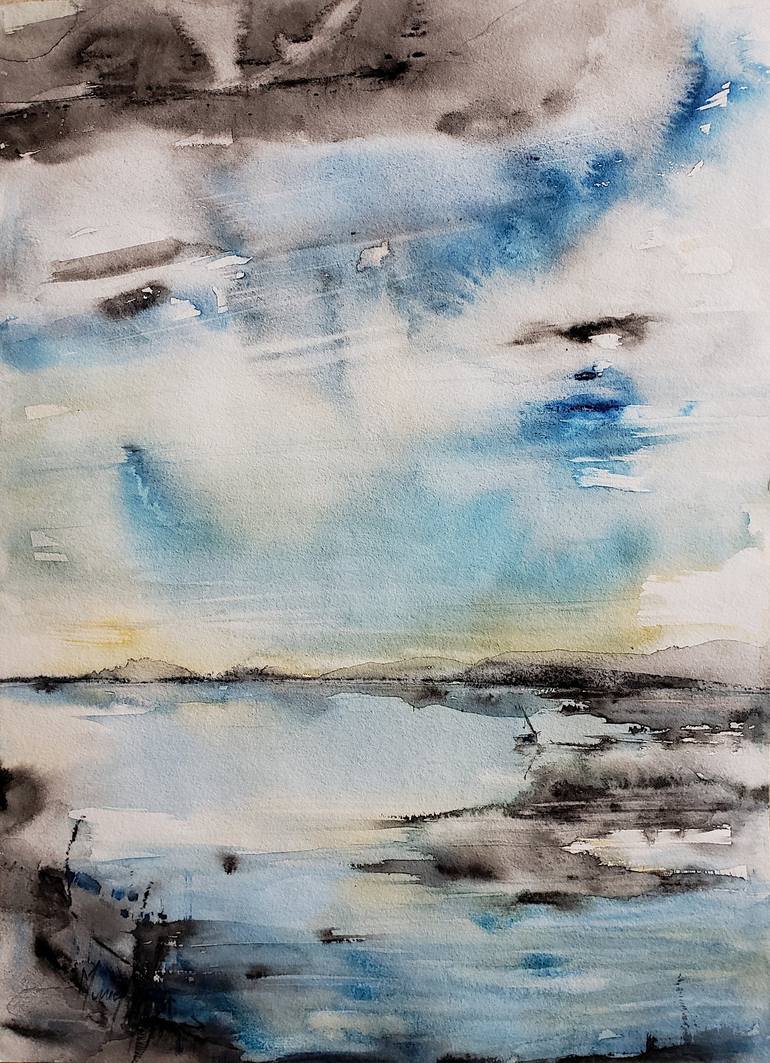 Watercolor on 300g paper. After a stay in Brittany, I painted a series of works inspired by these timeless and sublime seascapes. Created with large Chinese brushes on 300g watercolor paper, I released my gesture in the water using a limited number of colors. I have thus created works close to abstr...