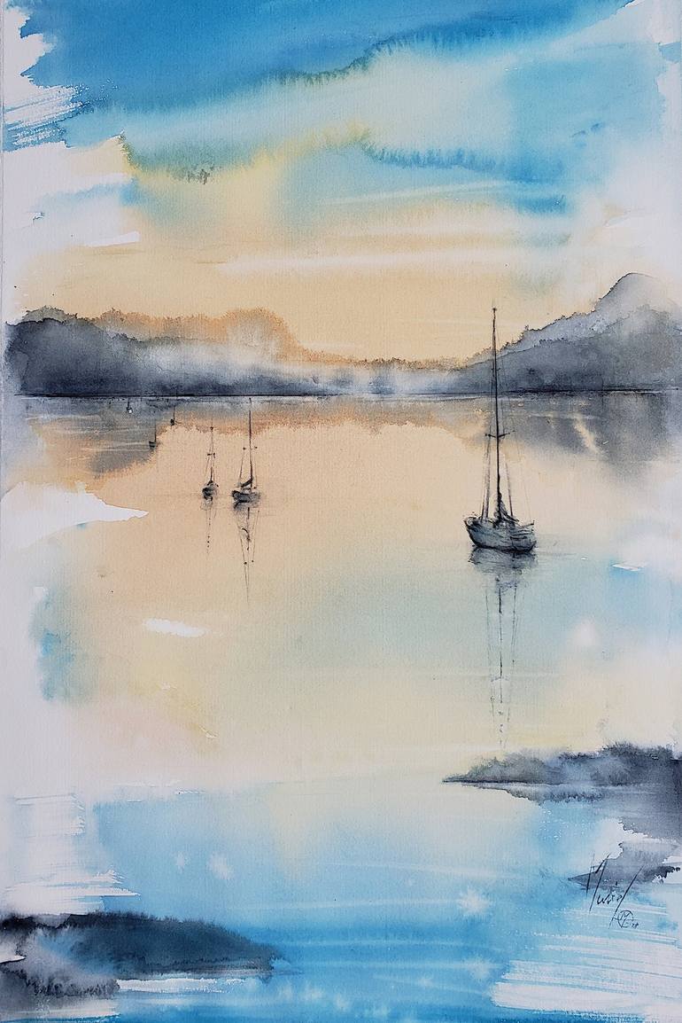 Watercolor on Fabriano 300g paper. After a stay in Brittany, I painted a series of works inspired by these timeless and sublime seascapes. Created with large Chinese brushes on 300g watercolor paper, I released my gesture in the water using a limited number of colors. I have thus created works close...