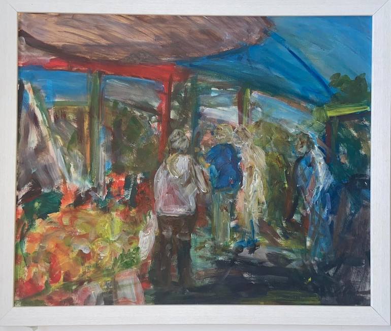 A study I completed in painting of a Welsh market in Wales. The painting is colourful and energetic and creates an atmosphere typical of British culture.