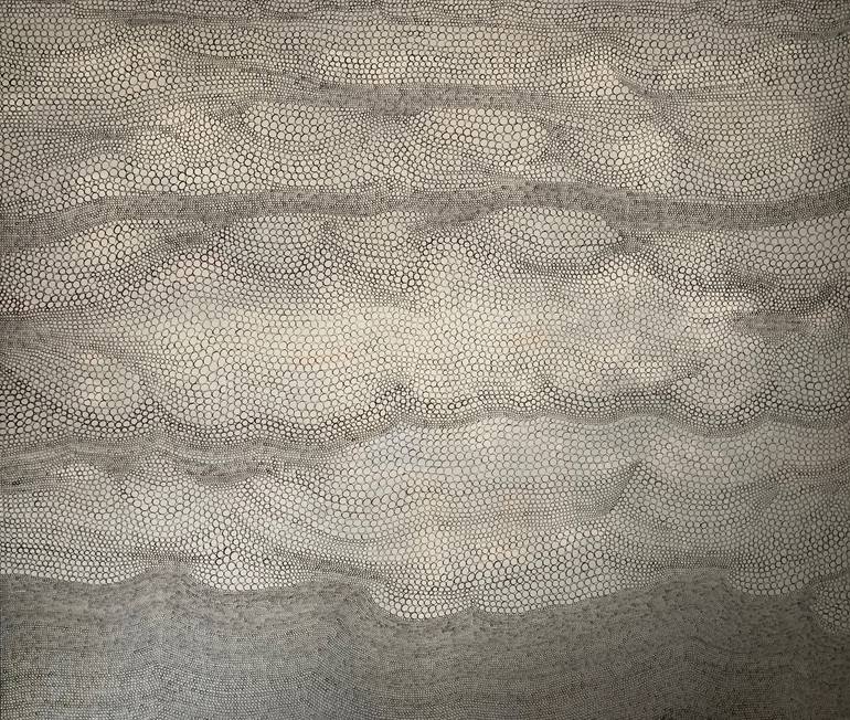 The repetition of the circular marks over the course of a month create its own internal tensions, rhythms, meditations and movement. The flow is subject to the moods and vacillations of the human hand with all its strength and fragility. The piece becomes a map of the activity with temporality emb...