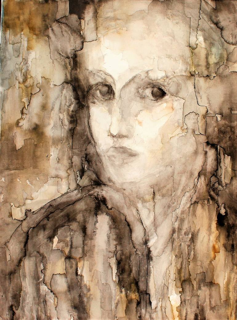 Ink canvas face portrait woman eyes Mary gaze paint