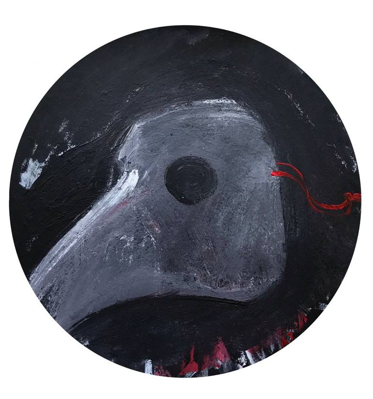 Work with a series of quarantine period covid "Ark". Allegory of animals on the state of people. The Ark as the Hope of Salvation. The picture is painted on a round canvas on cardboard.