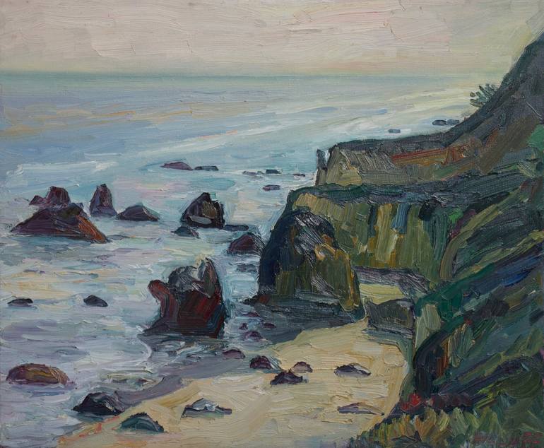 Plein air oil painting of Matador beach in Malibu, California.