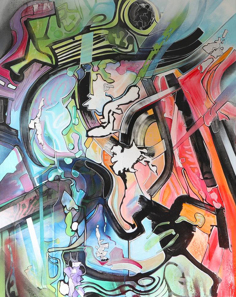 mixed technique on canvas: spray, acrylic, pastel, charcoal.