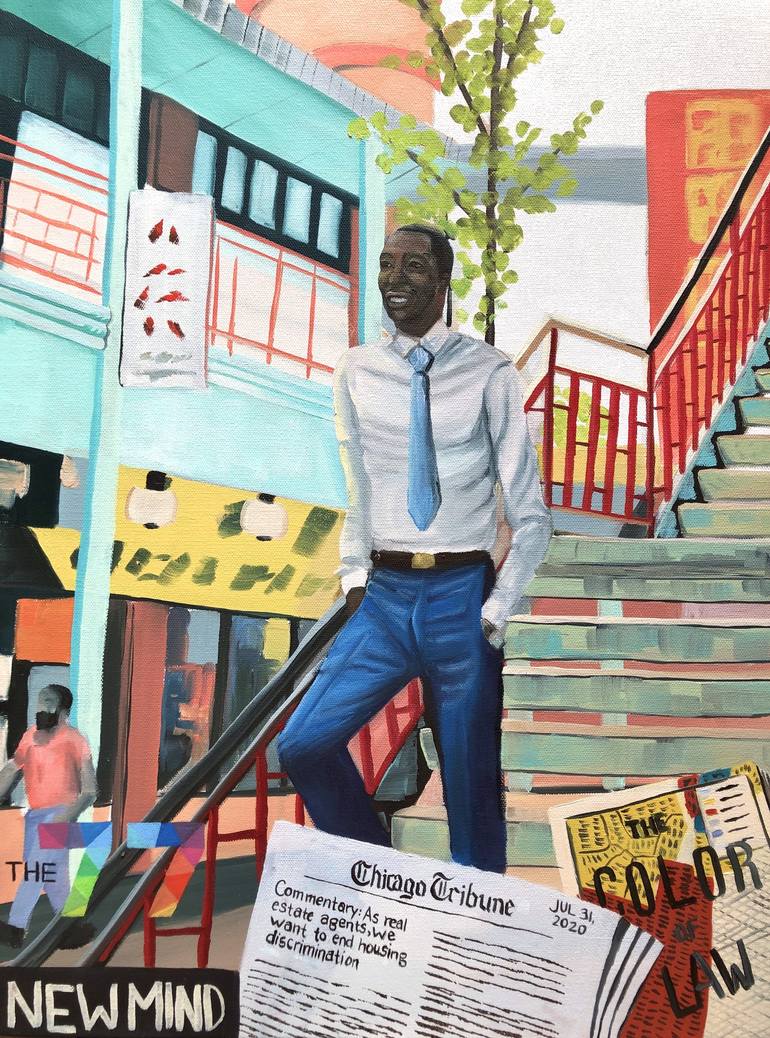 Original oil painting on canvas commissioned by the Chicago Association of REALTORS as a gift to their outgoing 2020 Board President, Maurice Hampton. Chicago’s Chinatown Square Plaza is in the background and the foreground features a few things that Maurice accomplished as Board President of the ...