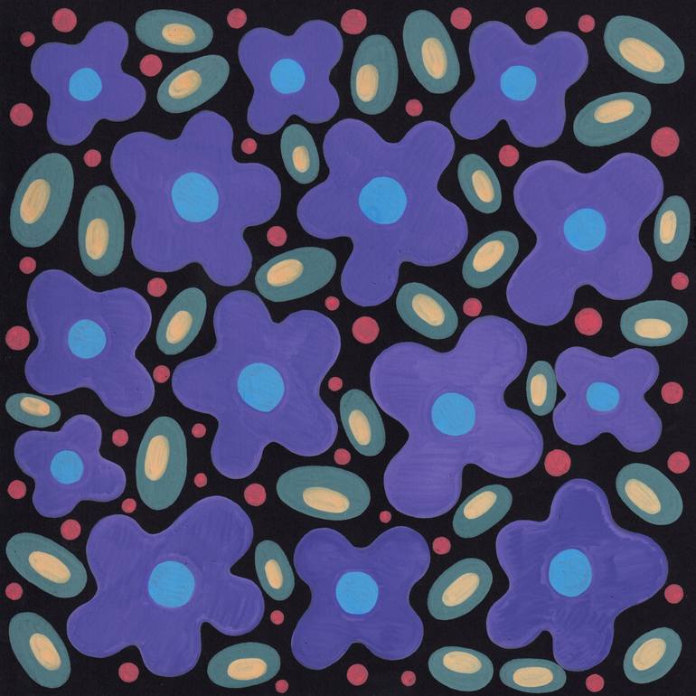 A colorful abstract painting of violet flowers. Inspired by nature and the beautiful floral forms of our planet. This is an original one-of-a-kind hand-painted artwork. Painting is NOT FRAMED, photos with frames are just for example of interior design. The artwork is painted with professional acryli...
