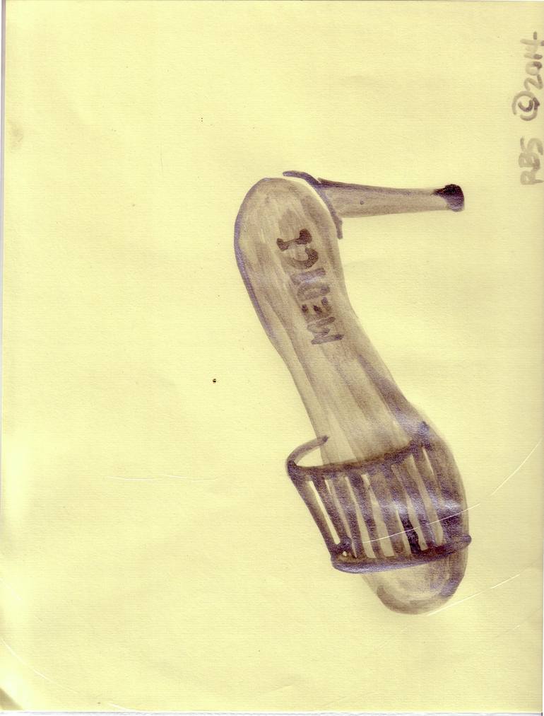 This dark silver and beige India Ink original painting completed by Dr Rebecca Stone in 2014 shows a Medici hi heel shoe. Rebecca Stone owns and retails control of all copyrights and digital rights management of each piece of art after the sale of the original. Purchase of the original, limited edi...