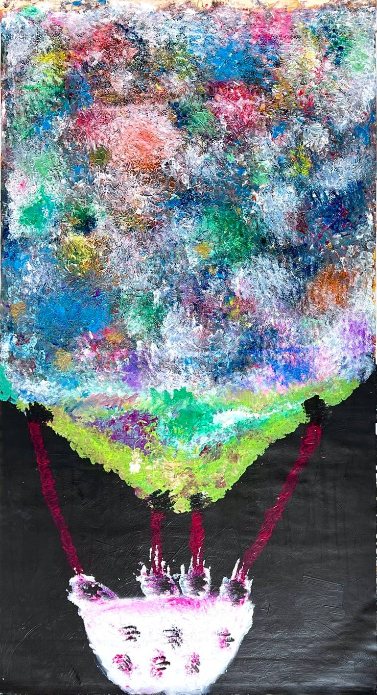 The inspiration for this painting comes from the current world. This painting is a two-way artistic conception. Hanging upright is the earth compared to an umbrella basket, carrying the greed of the overloaded human beings in the world. Hanging upside down is that the universe outside the earth is c...