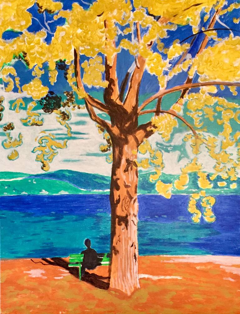 This painting "Meditations" is painted from my imagination inspired by the scenery inside and outside of my home. When painting I transform what inspires me through colors and brushstrokes adding to or detracting certain elements at will. This painting comes professionally framed in a beautiful whit...