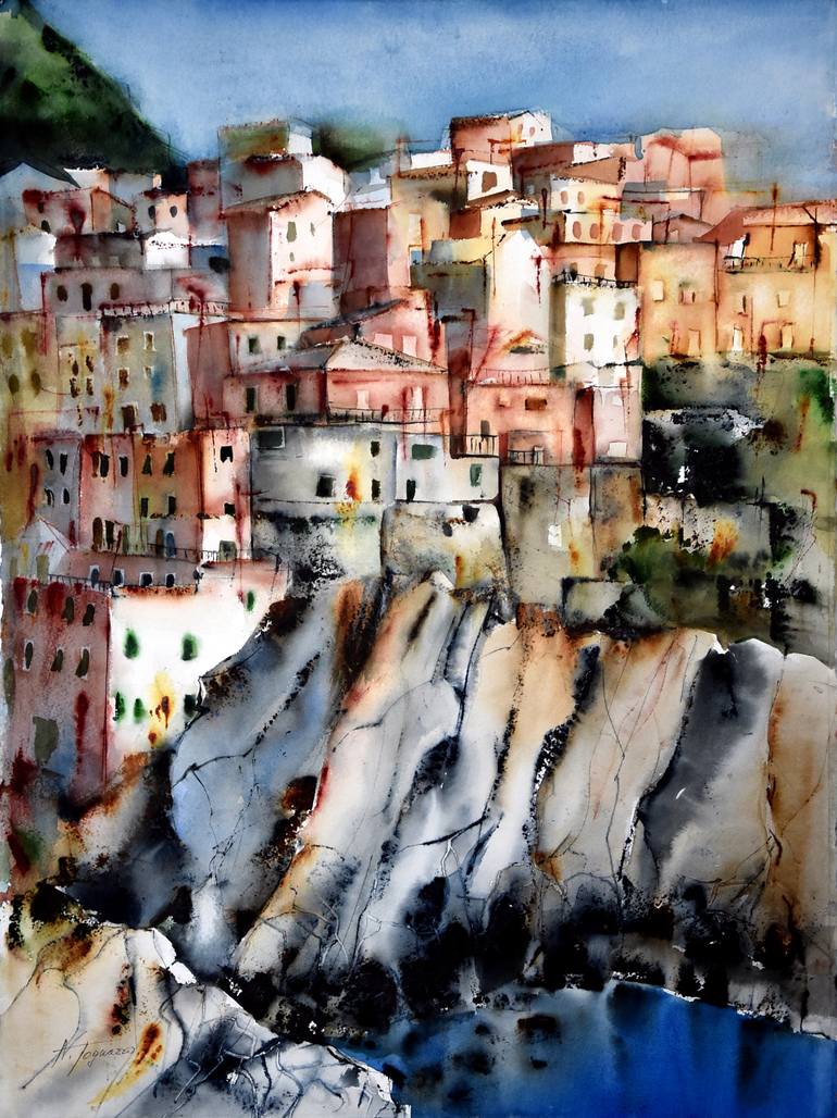 I often go to Liguria in the summer, near the Cinque Terre. These are 5 old villages overlooking the sea and built on the rocks. I have always liked Mediterranean villages, where houses cross one another. In the Cinque Terre there is a close relationship between land and sea and the villages are bui...