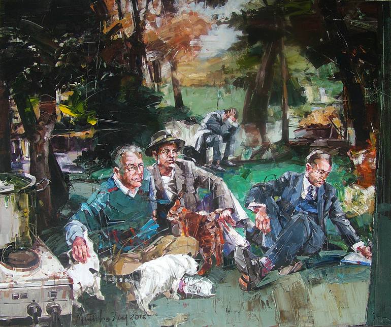 MARTINHO DIAS, (b. 1968) is a Portuguese artist. He have a Master degree in Fine Arts - Painting, by Oporto University. Martinho Dias was illustrator and teacher of Visual Arts until 2009. Since then, he started to dedicate himself full time to artistic activity with works represented in several publications. His work has been distinguished and displayed in many individual and collective exhibitions, both in Portugal and abroad. ______________________ "My work is mostly figurative and my main theme is a social one, playing with society's different powers and privileged social layers, mixed with a generous portion of irony and humour circling many paradoxes". My initial material and subjects are manly from press media, art history and Internet. I am a manipulator and I am also an image/context ‘agitator’, contributing to reality new meanings and narratives. The photographic images are used as "models" to my pictorial compositions. What I do consists of removing several of today’s leading public figures of their comfortable sets offering in return, as often as possible, some degree of discomfort". (Martinho Dias, 2015) The process: "I don't usually make preparatory drawings and sketches on paper; it is more convenient to work with the brain. Besides, at a certain point, computer has become an excellent tool at the initial phase of each new project. This initial moment of the process is crucial for defining the central idea of the painting as well the elements that will give it shape. _______________________
