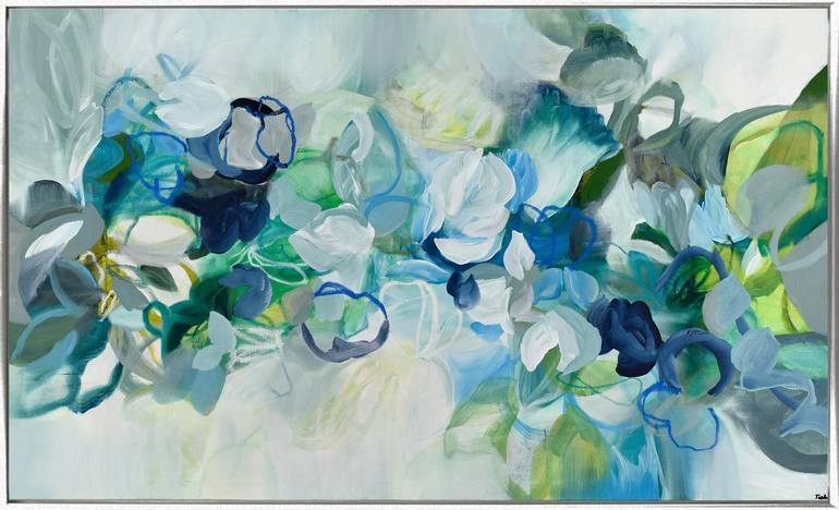 ABOUT THE WORK: The “Exhale” series is nature-based abstraction. I paint how nature feels to be in it, in a loose, abstract way. I combine layers of color, light, mist, and beauty. This is an original, one-of-a-kind painting on 1.5" thick gallery wrapped canvas done in oil, acrylic, and oil stick....