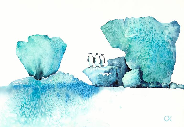 Melting Ice, watercolor on paper. Polar Seas series. Climate change project.