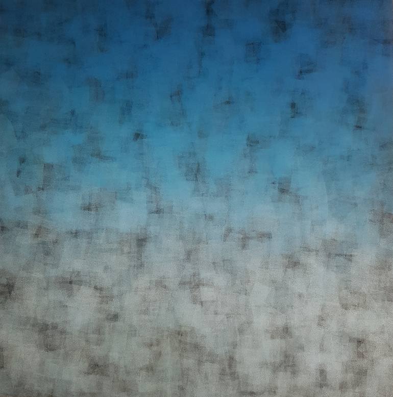 Uplifting, dreamy and euphoric. Transporting the beauty and energy of the Adriatic Sky on a sunny summer day. "Melting sky #1" from 2017, 80x80 cm on 12 mm mdf (medium-density fibreboard) Signed on the side and on the back. I start with complete black surface, slowly layering thousands of semitran...