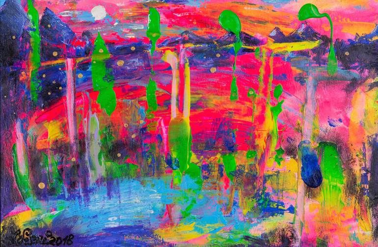 Merry Dancers is a happy and cheerful painting! It was given to me like my other creations. I hope the viewer will feel the joy from the painting and feel inspired. If one feels joyful it will radiate to other people around! The measurements are given with a papartou, a thin modern golden frame and...