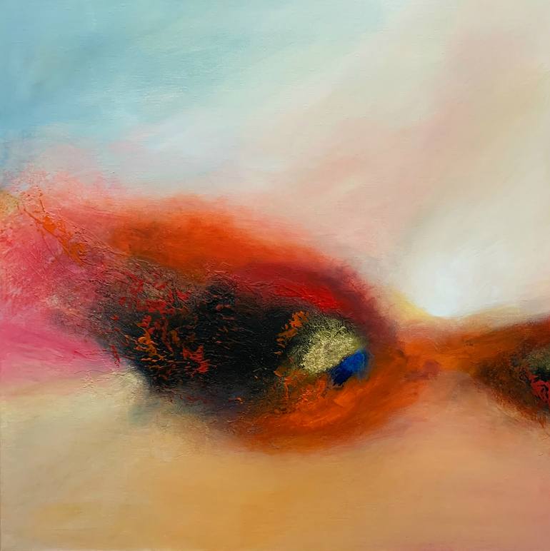 In "Metamorphosis 6," I invite you to witness the alchemical dance of colors—a canvas transformed into a visual narrative where light blue and warm hues of orange and dark reds converge in an exquisite metamorphosis. The deliberate interplay of these hues, with a striking accent of blue at the focal...