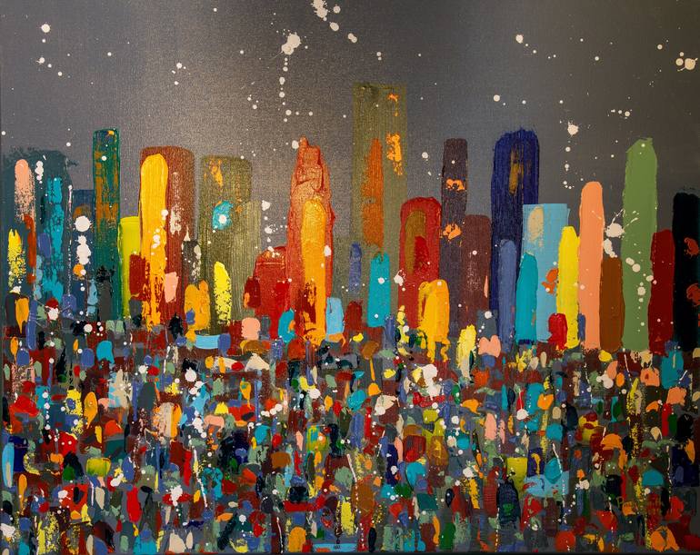 The Metropolis series has sold very well nationally and internationally. 'Metropolis 17' is very colourful and dynamic and will light up any room. This abstracted night-time cityscape makes you think of cities like New York and London, but I made no attempt to copy a real skyline. 'Metropolis 17...