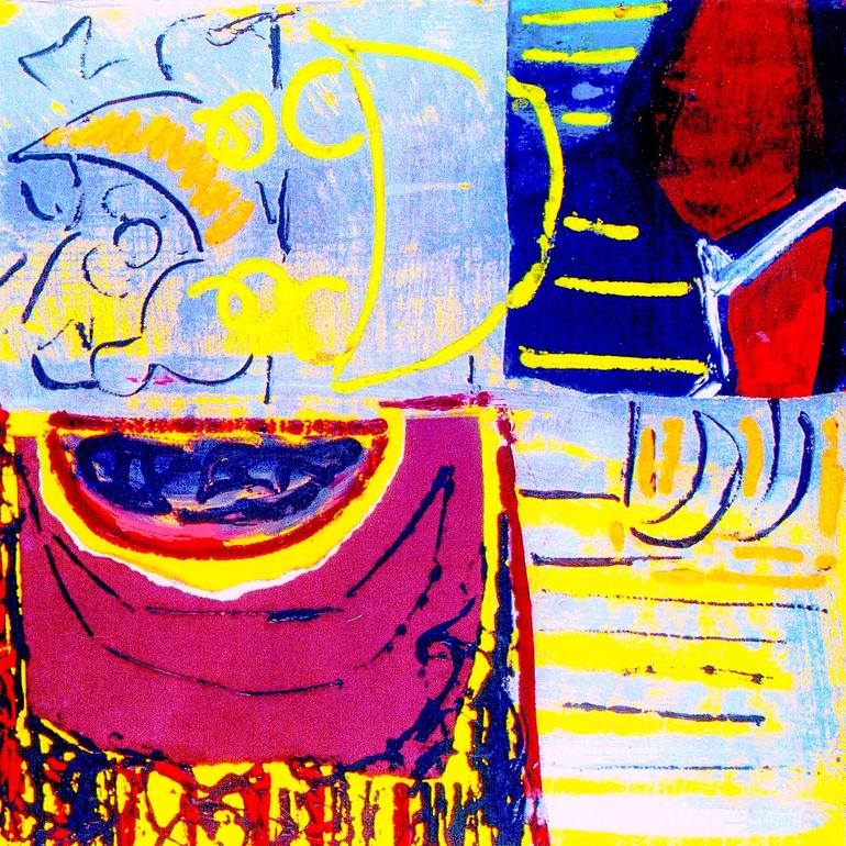 "Mezzaluna 98 - Composition 4" is a dynamic piece by Göknil Gümüş Sungurtekin that brings the familiar world of the kitchen to life through art. Part of a series inspired by the mezzaluna — a half-moon and pizza knife — the artwork connects everyday kitchen tools with deeper conceptual meaning. Dra...