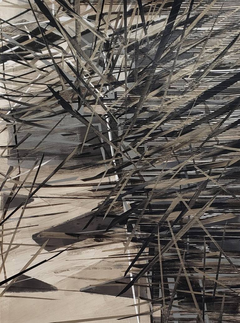 This painting is based on photographs and videos of updrafts and dust devils. They are my way of rolling around ideas before I make larger, more complicated works. Small works are done in a variety of ways. They involve splatters of paint, copies, transparencies, graphite, white-out tape, and an abu...