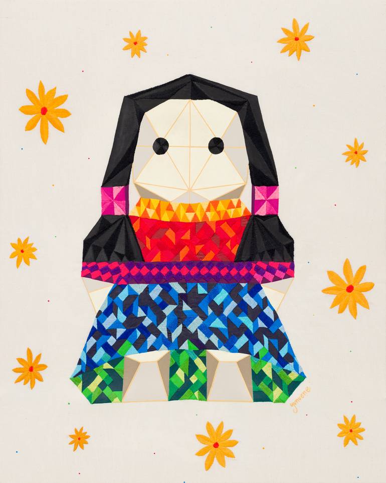 Mija (means dear daughter in spanish ). Reinterpretation of the traditional Mexican rag doll "María". A tribute to Mexican women, who with their work, effort and dedication have contributed to the development of this nation. Her heart beats for all of us. * This painting has an Augmented Reality...