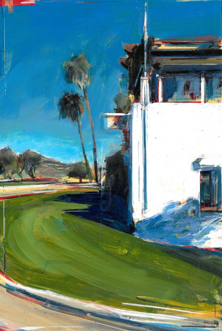This artwork stems from a series of sketches made on-site in Mijas, Costa Del Sol. Renowned for its golf courses, this composition showcases the white facade of the clubhouse, contrasting with the warm foliage and distant landscape of southern Spain. I’ve always been captivated by such abstract comp...