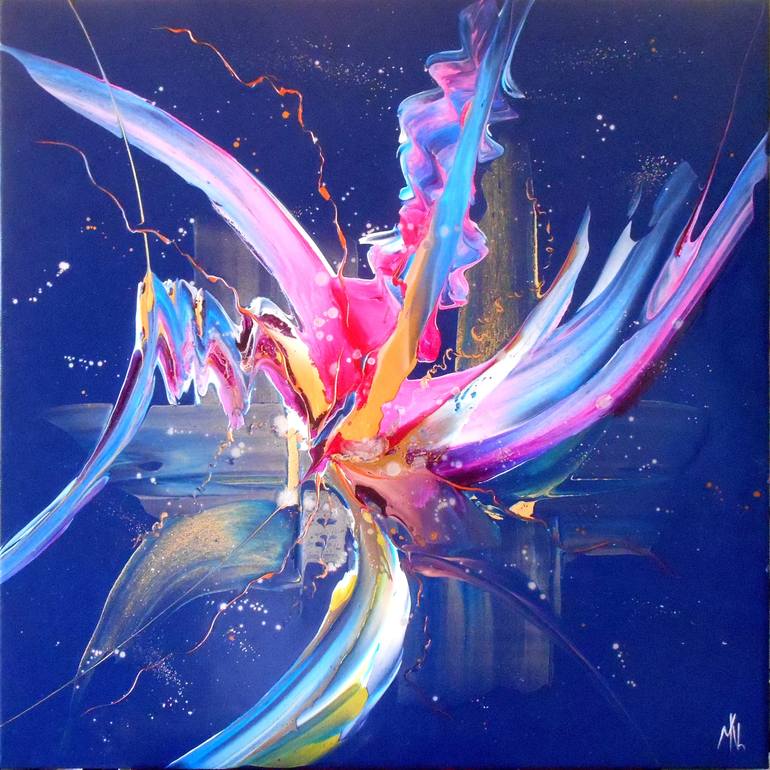 A vision of tropical flowers deep in space. A new species. Different types of colors used : acrylic, metallic, laquer, pigments, "dorures".