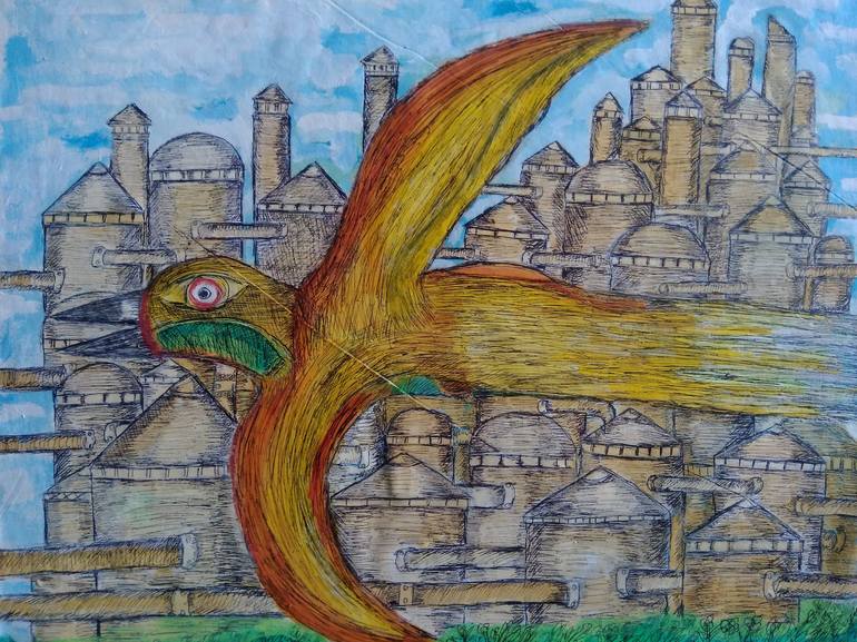Mile 98. About birds paradise lost on forest Original painting Lanjar Jiwo